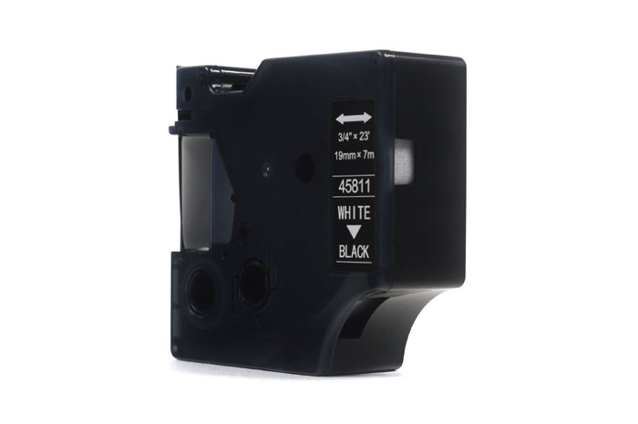 Taśma JetWorld Zamiennik Dymo D1 Biały na Czarnym, 19mm x 7m (45811) (S0720910)