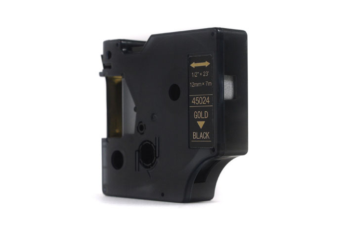 Taśma JetWorld Zamiennik Dymo D1 Złoty na Czarnym 12mm x 7m LM100, LM100+, LM200, LM300, LM400, LM420P, LM350, LM350D, LM360D, LM450D, LM260P, LM120P,